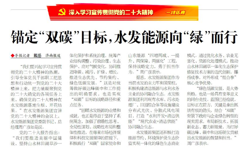 《经济导报》报道水发能源党的二十大精神学习:锚定“双碳”目标 水发能源向“绿”而行