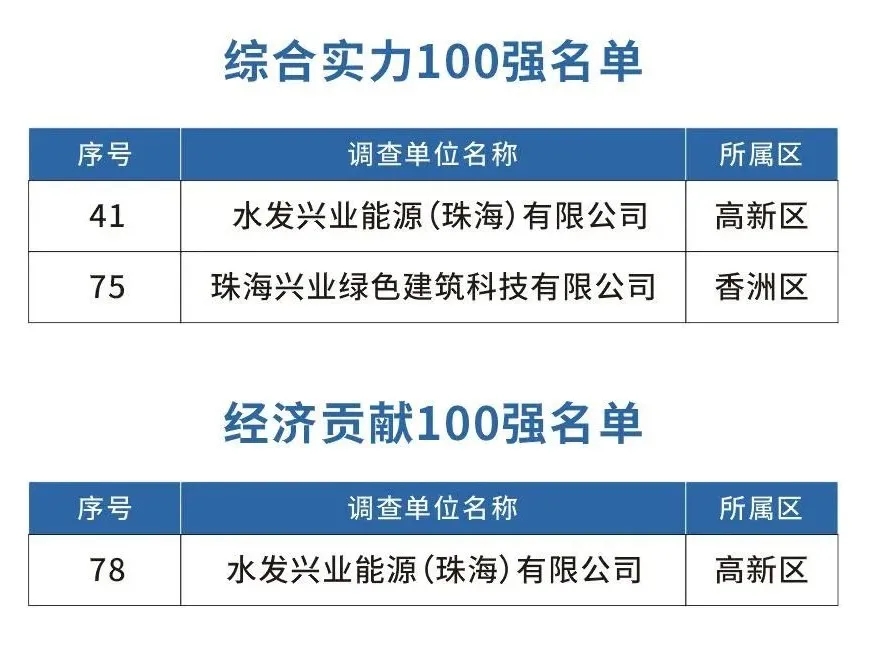 水发兴业能源集团两权属公司入选2020年珠海市高新技术企业百强